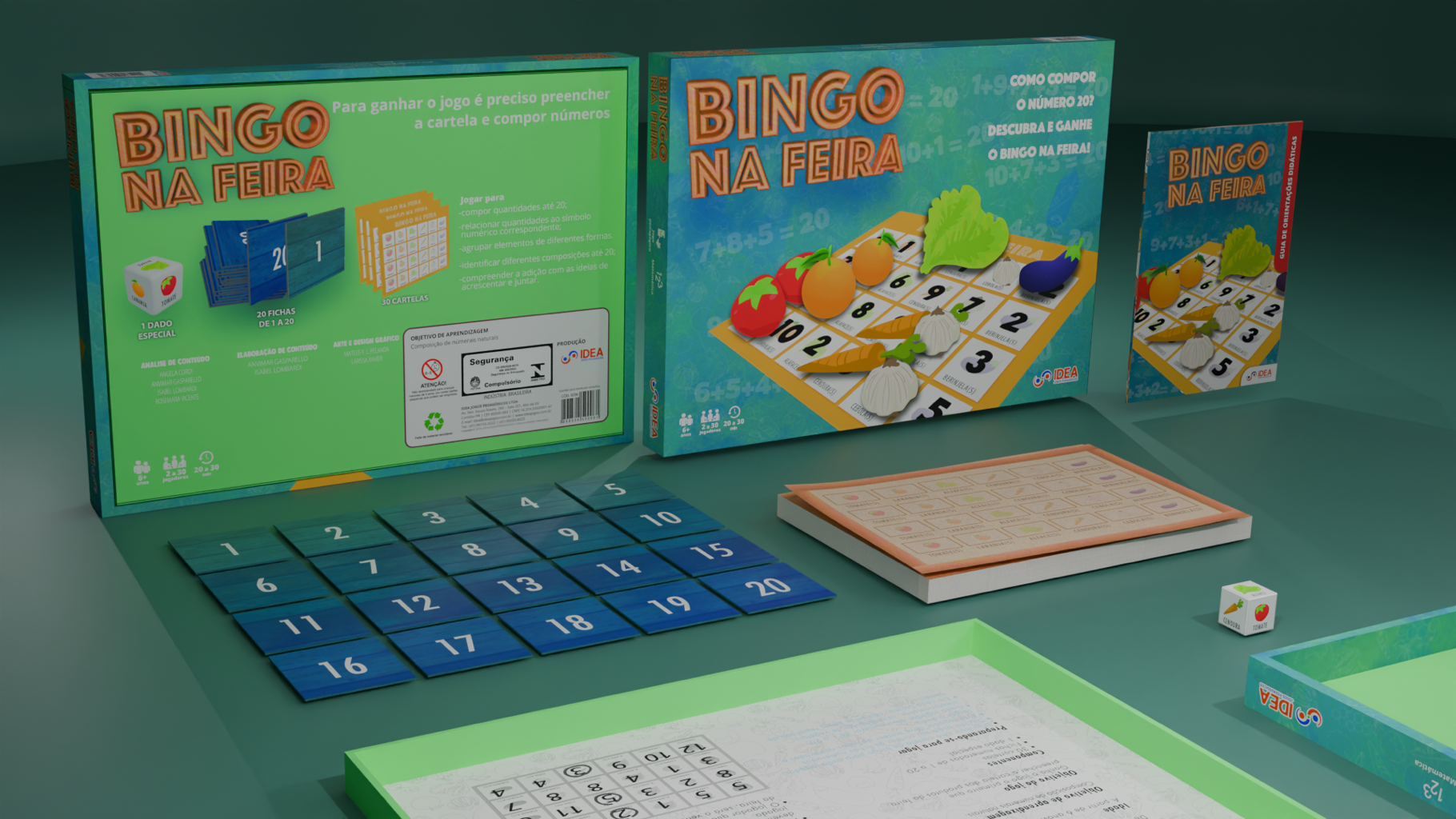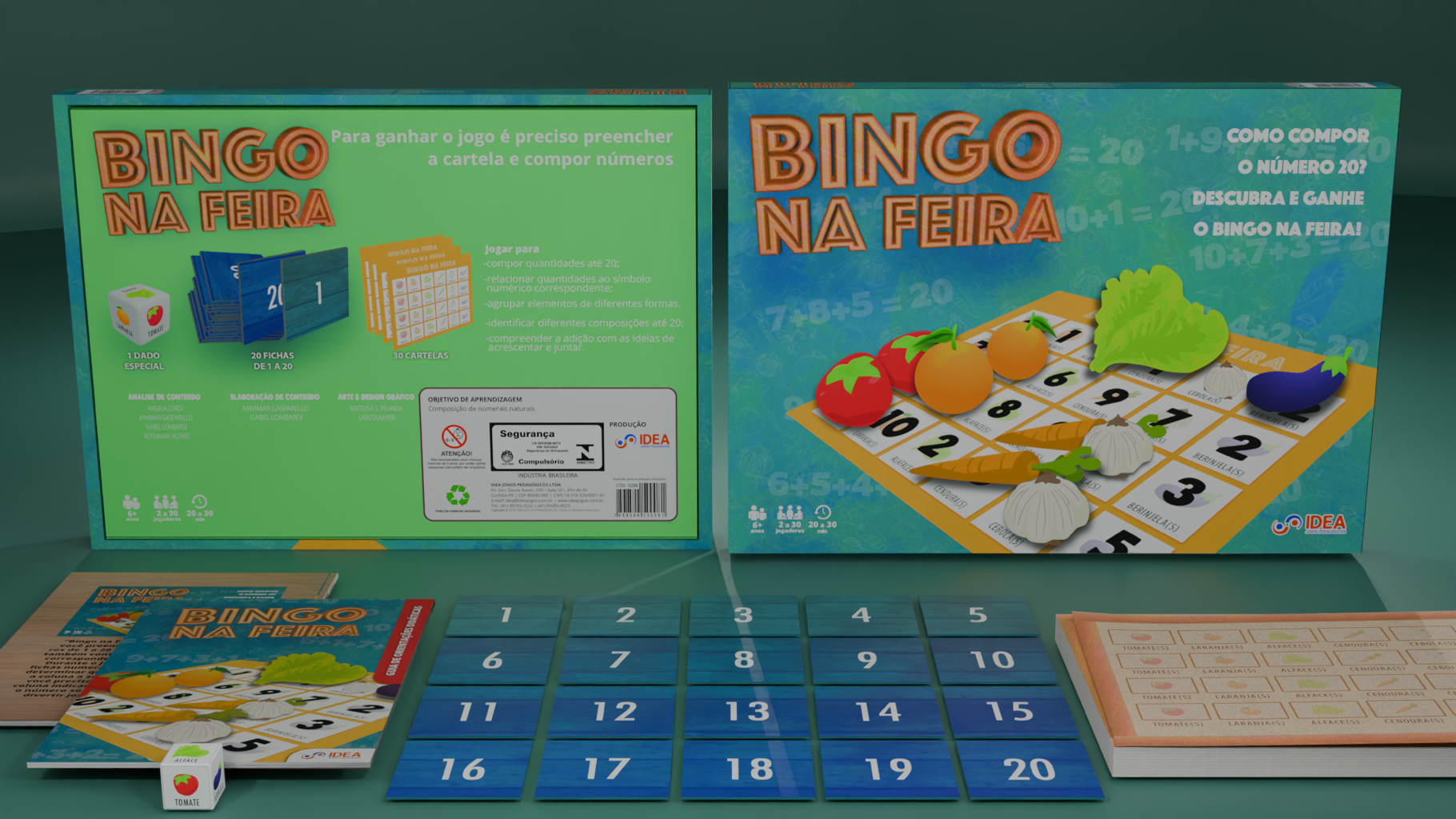 “Bingo na Feira” [Bingo at the Fair] is an educational game produced by Idea Jogos Pedagógicos and authored by Anvirmar Gasparello and Isabel Lombardi. The game works like a bingo game in which children are taught how to count numbers from 1 to 20. In this project, I worked on the illustration, layout and graphic design of the game as a whole.